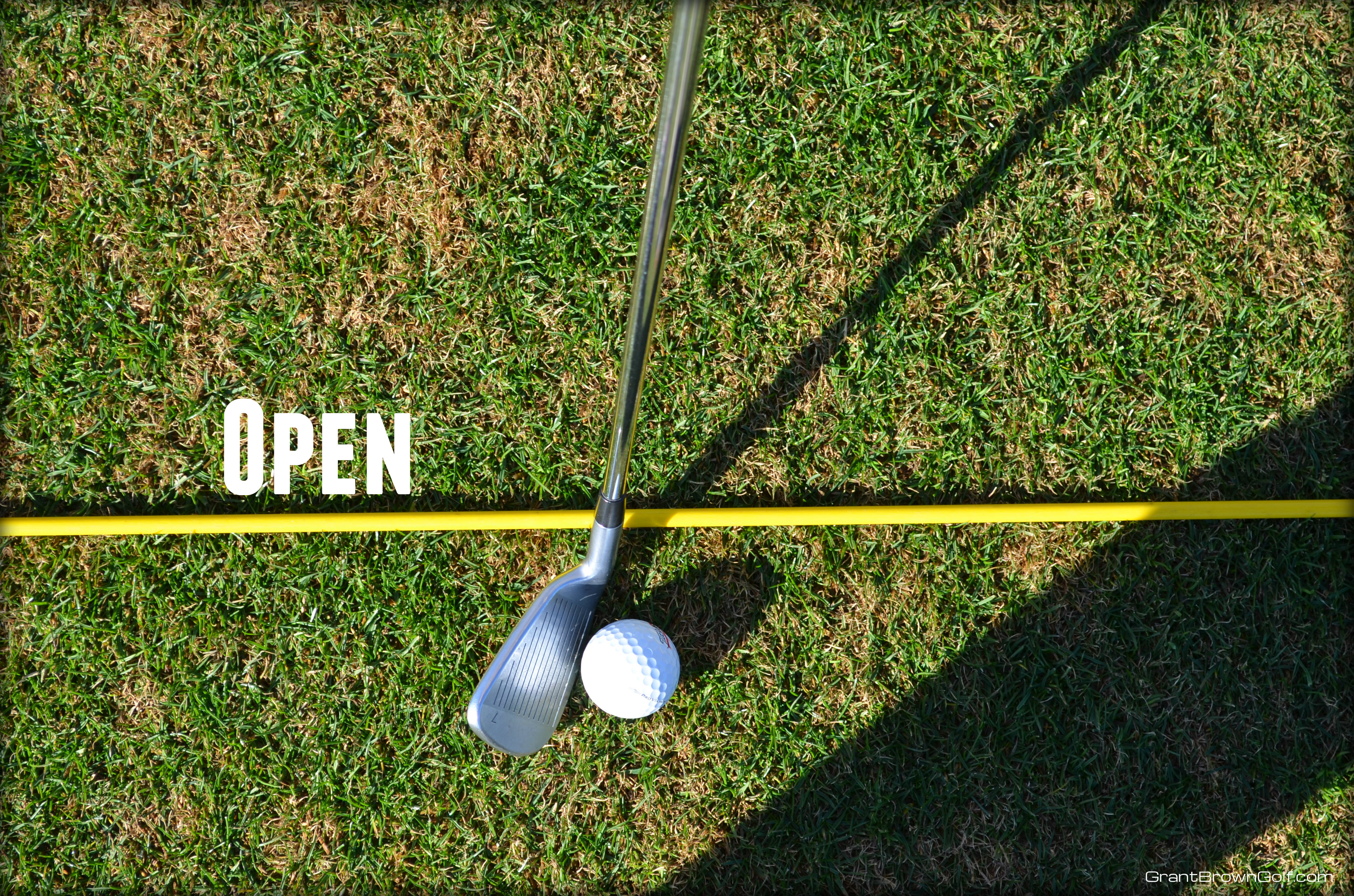 When looking down at the ball, you want to make sure that the leading edge of the club-face is square to the target line. Above is what a square club-face looks like at address.