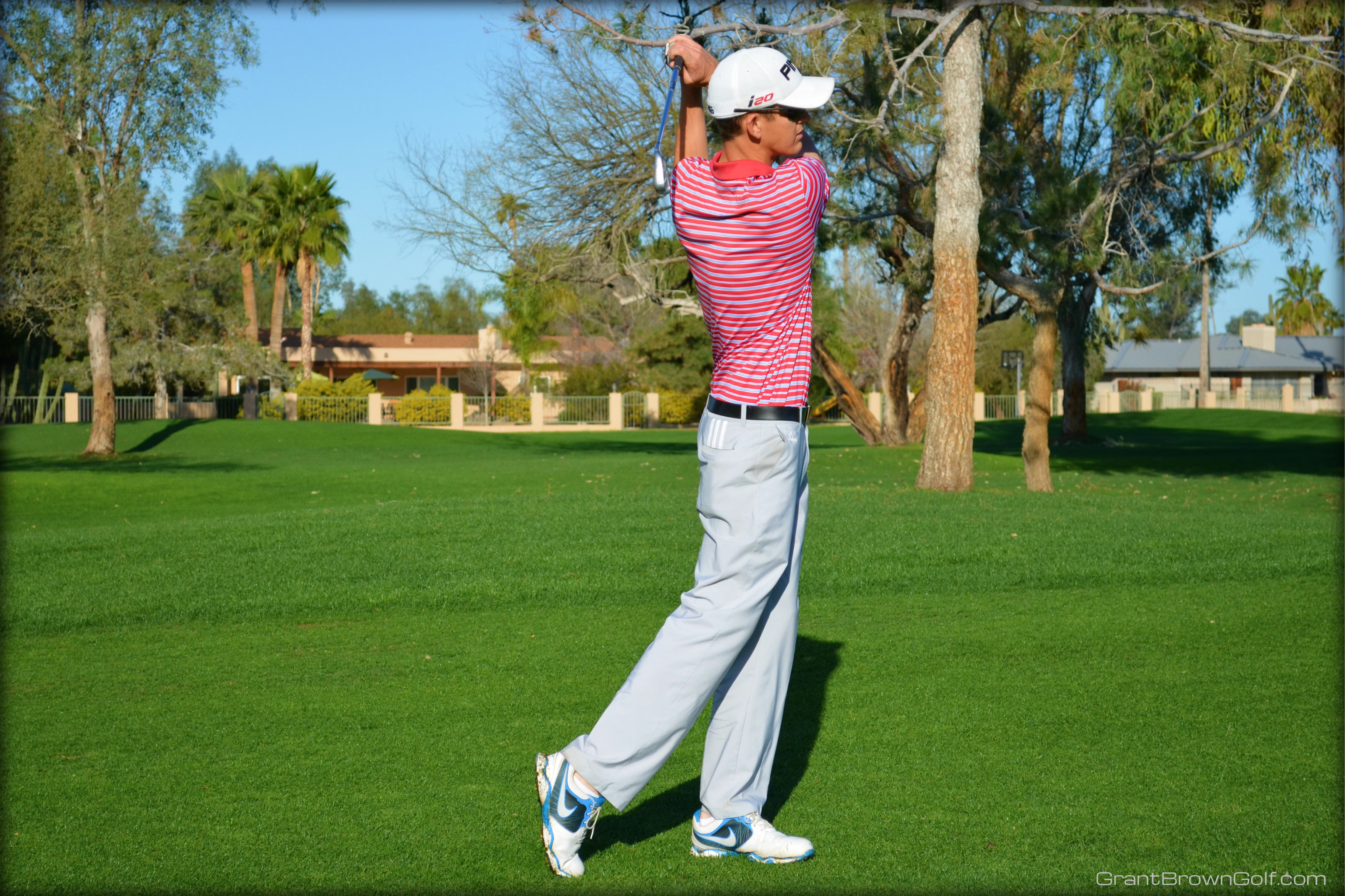 I recommend hitting ten shots doing this drill at the beginning of every range practice to get your weight moving properly to your left side. Then you should have no problem finishing in a nice balanced position with all of your weight on your left side!