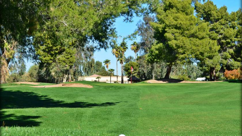 Playing a par 5, you fan your second shot short, right of the green. Your ball comes to rest 40 yards from the hole on a hard-pan, dirt lie. The pin is tucked 6’ onto the edge of the green and you have to hit over a deep pot…