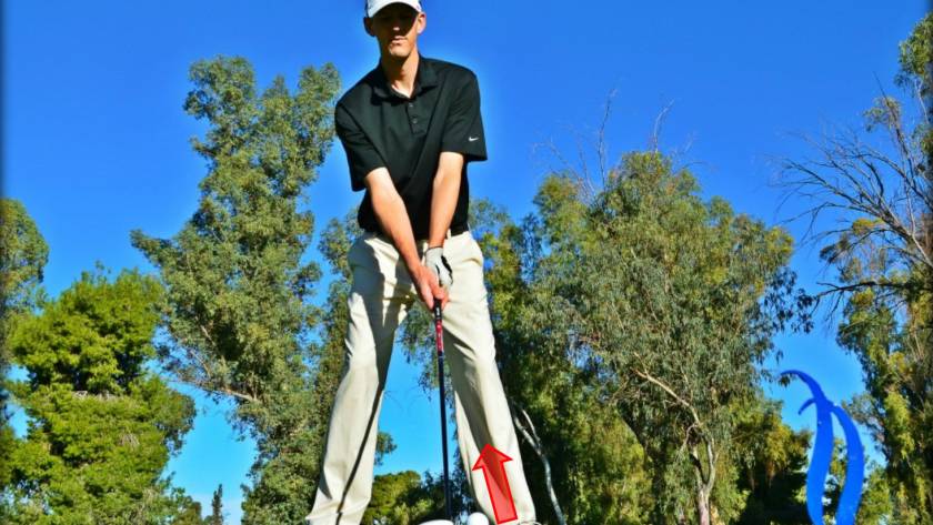 At address, rock your weight away from the target so that your lead foot comes off the ground about a half-inch and then settles back down lightly. This drill positions…