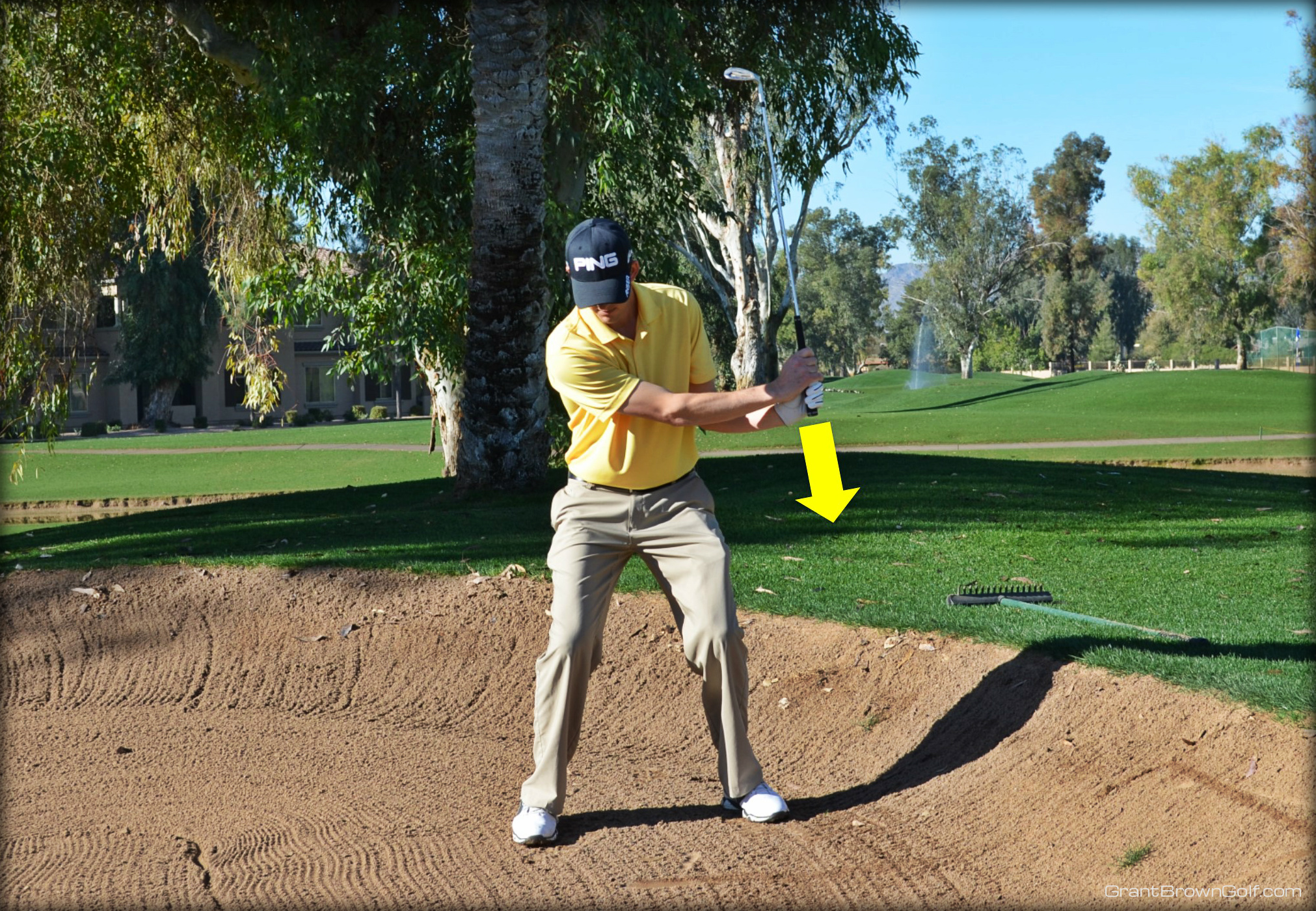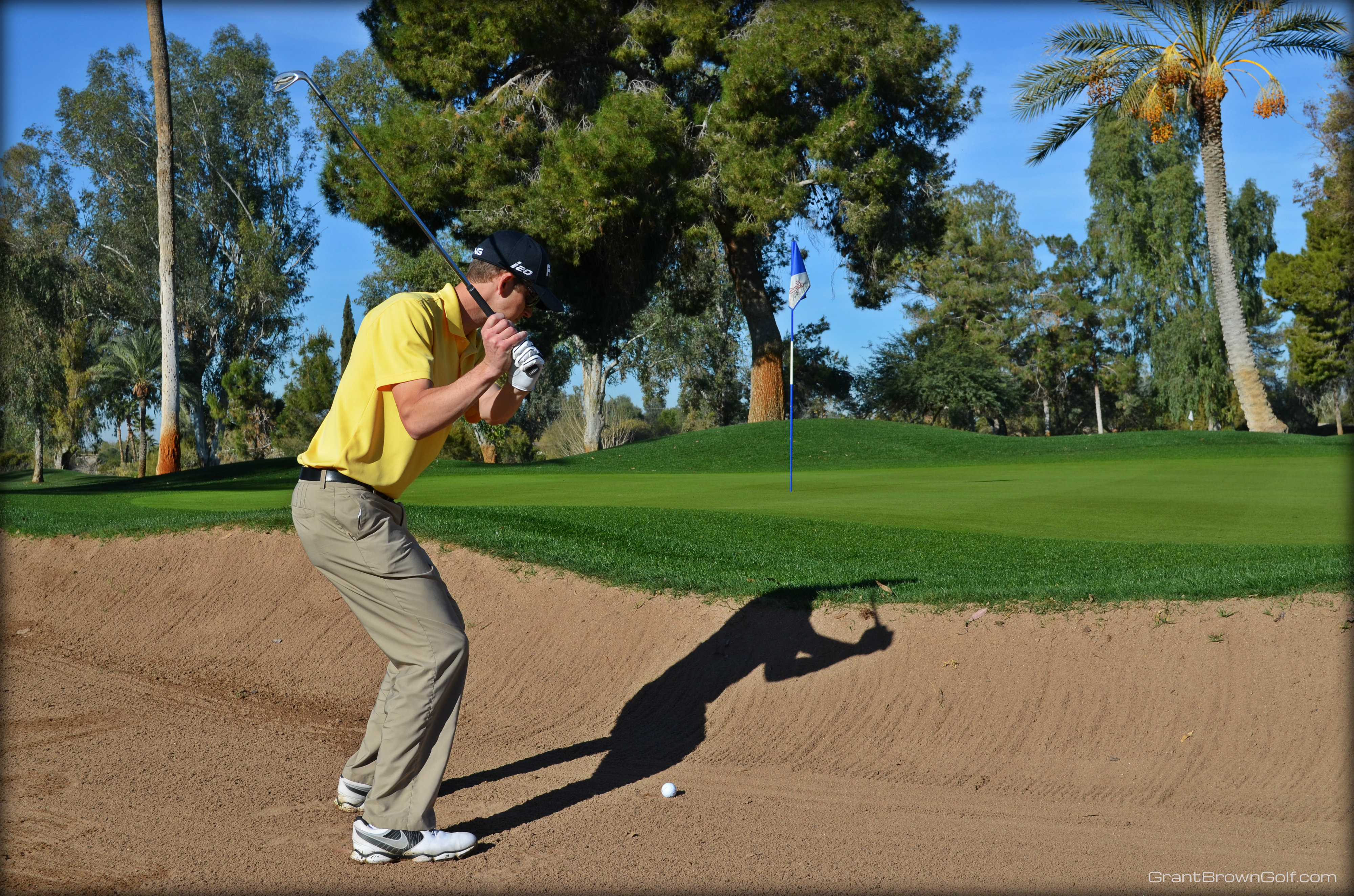 The bunker shot I described above works especially well for firm sand like we have in Arizona. For soft sand you may need to turn your body a little more to generate more club-head speed, but your wrist action should feel the same in soft sand as it does in firm sand.