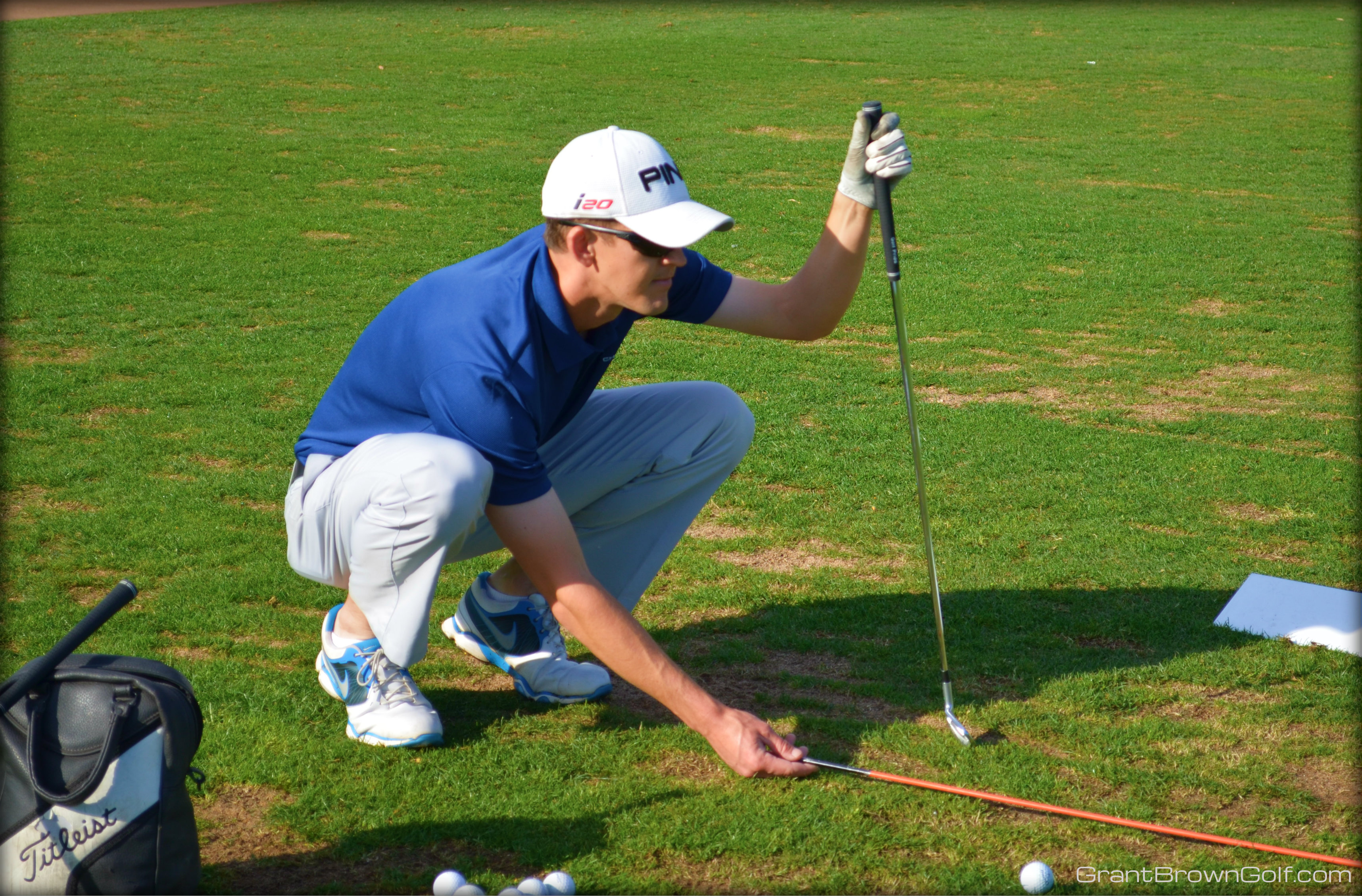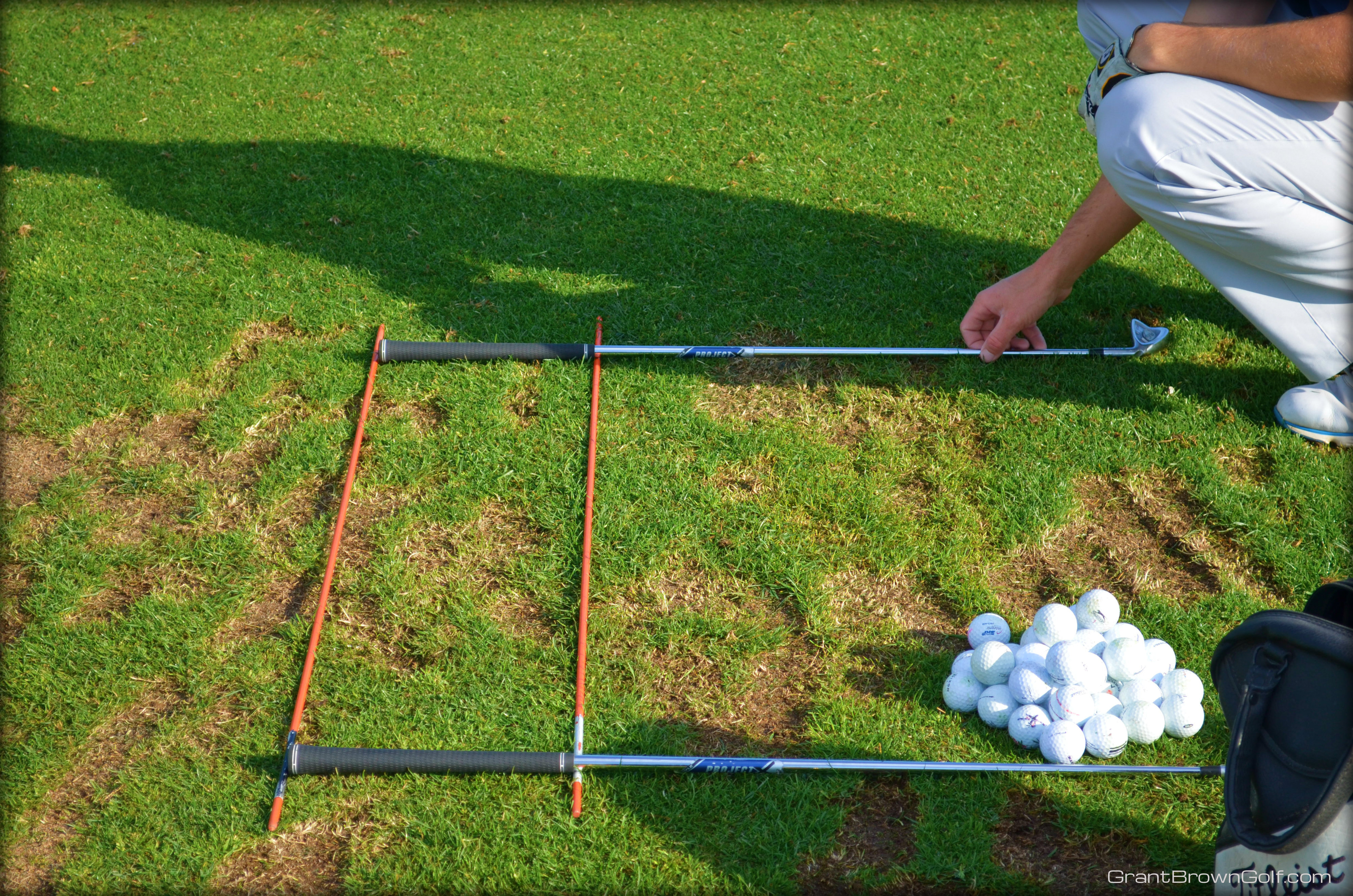 Here’s how I make sure that my alignment rod is set up properly when I practice my alignment on the driving range: