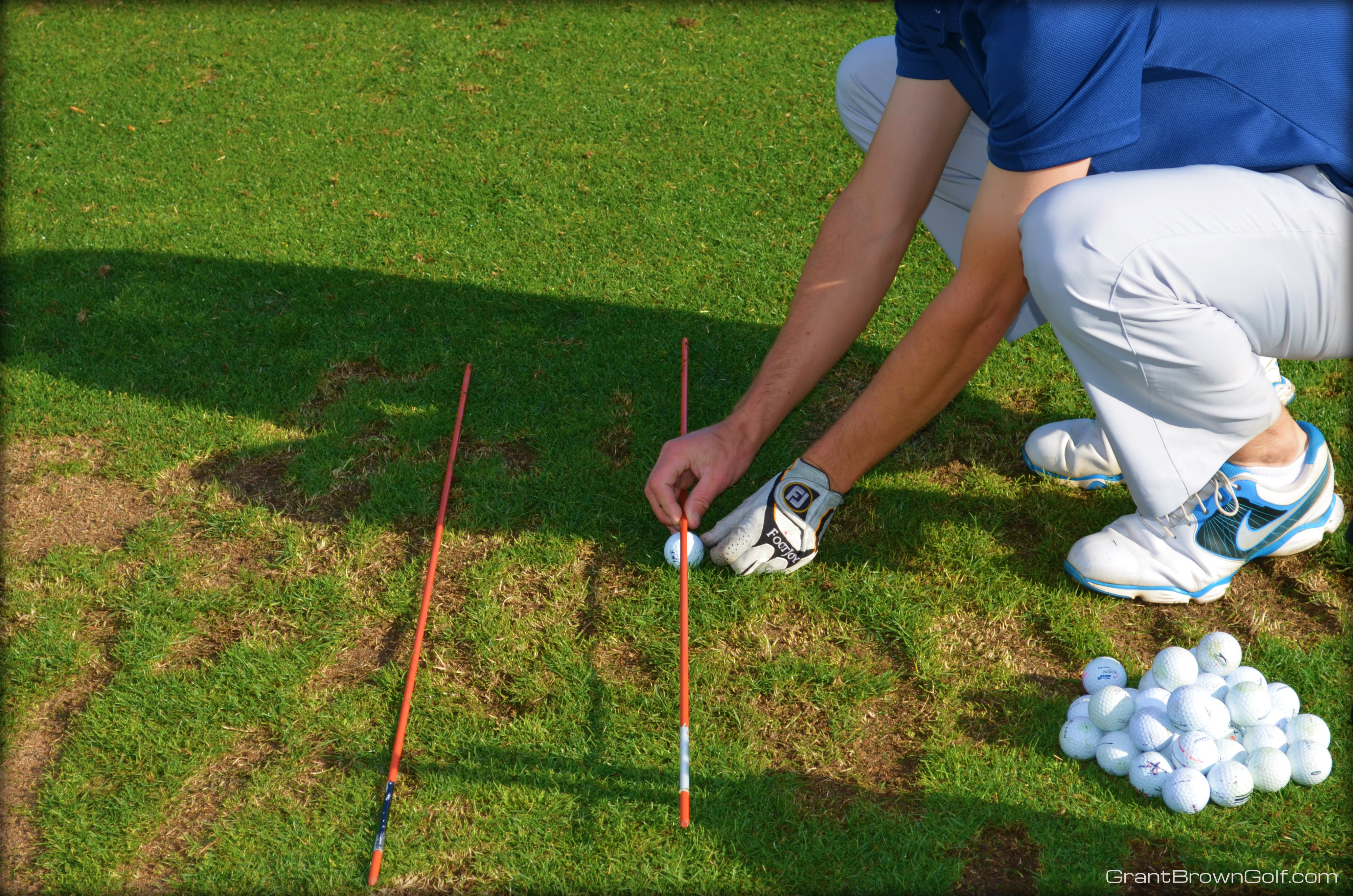 Then I take away the rod on the right and replace it with a ball. Now I am ready to practice knowing that I am lined up correctly!