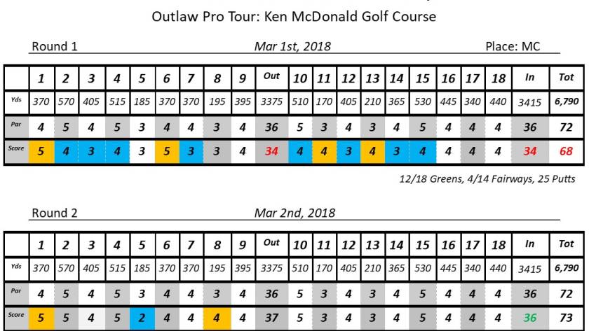 Above are my scores from four tournaments on the Outlaw Tour over the last couple months.
