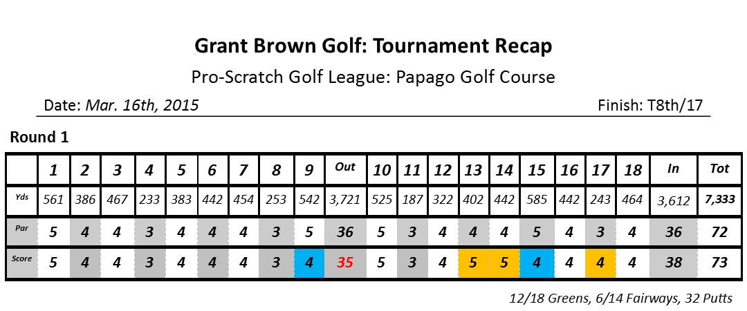Positives: I had good looks at eagle on holes 1, 10 and 15. I just was too aggressive; running the ball too far by the hole and ended up settling for par on numbers 1 and 10.
