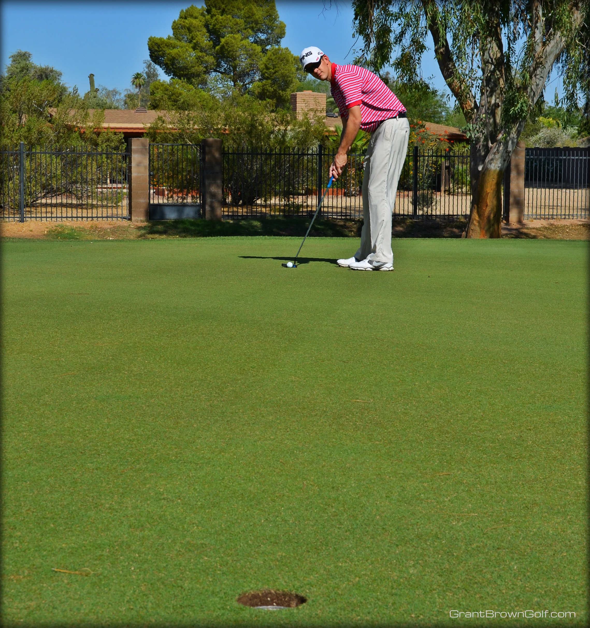 Many golfers stand over the ball staring at it before starting their backswing. If you stare at the ball too long before stroking your putts, you give random thoughts time to enter your mind. “This putt is for birdie” or “I hit my last putt too hard, so I better hit this one softer” are examples of thoughts that have entered my mind when I stand over the ball too long.