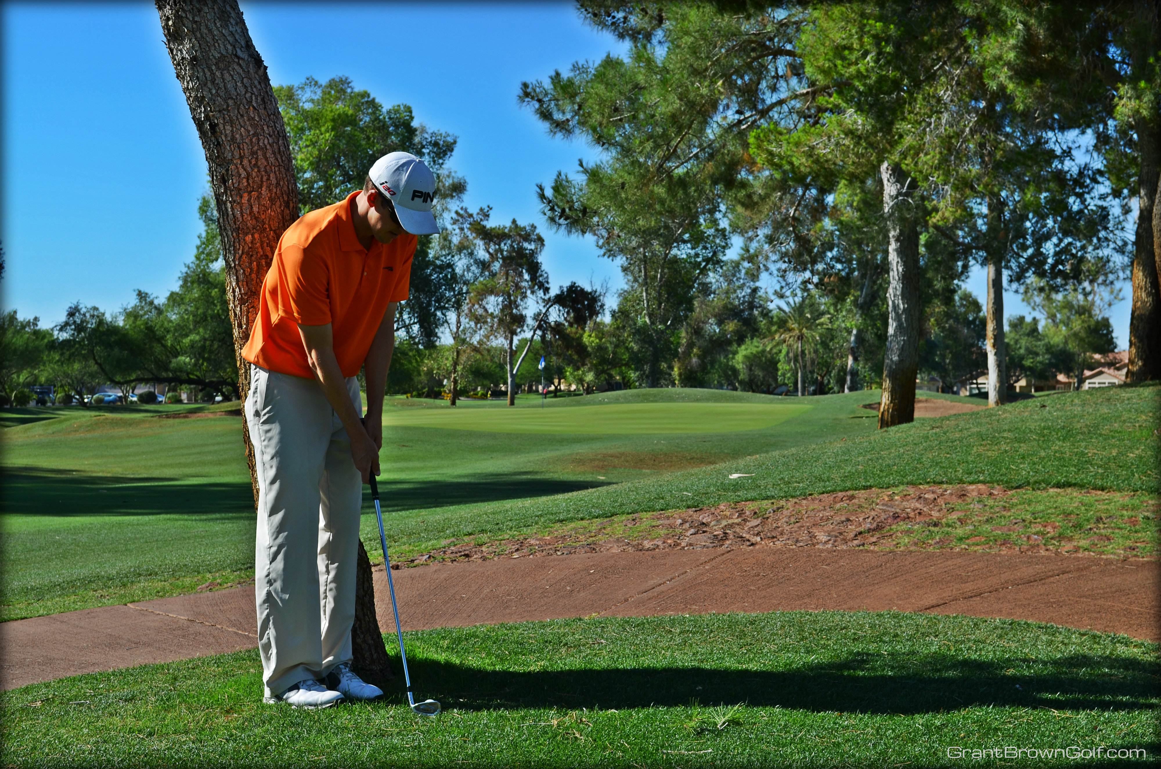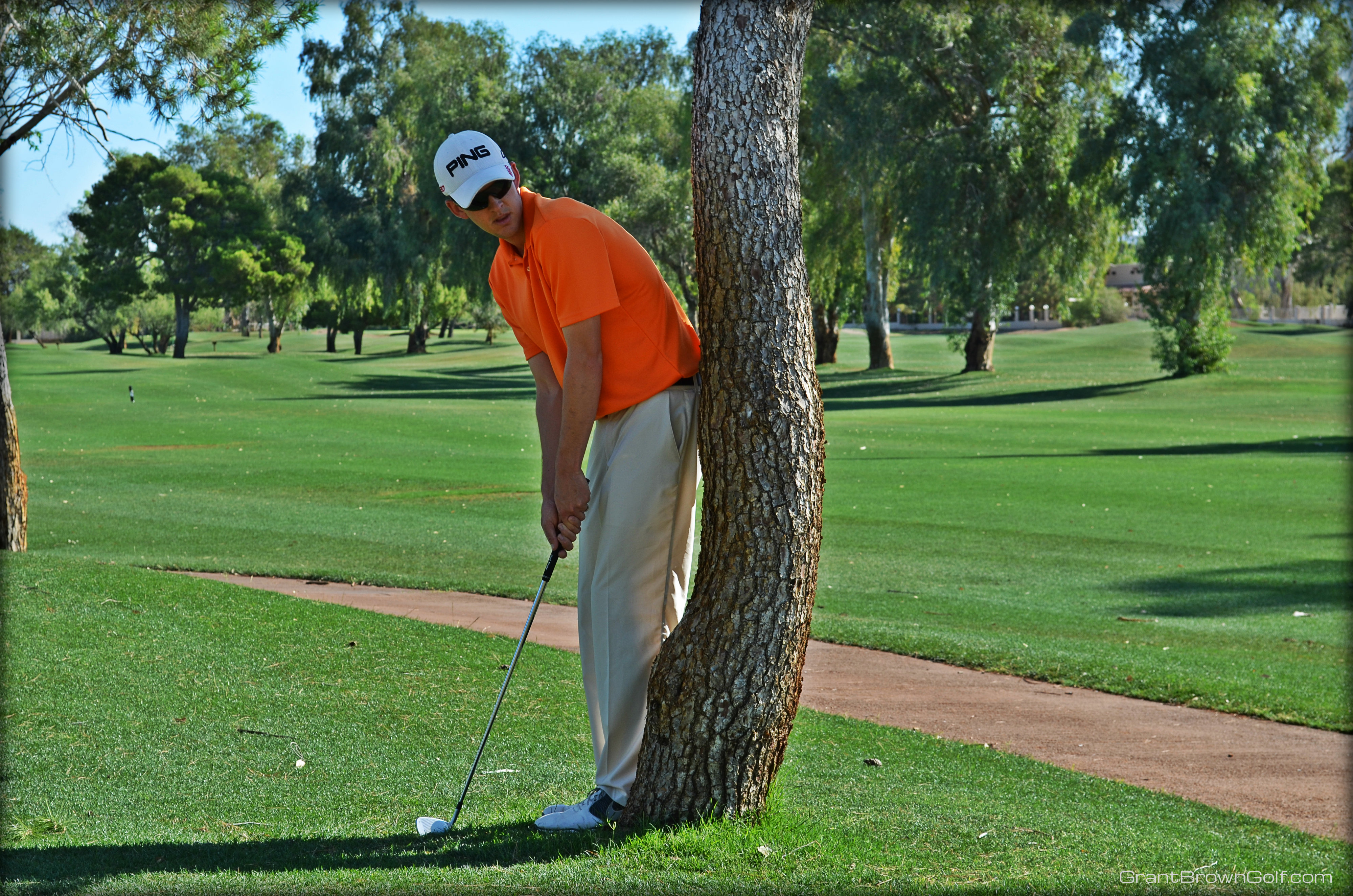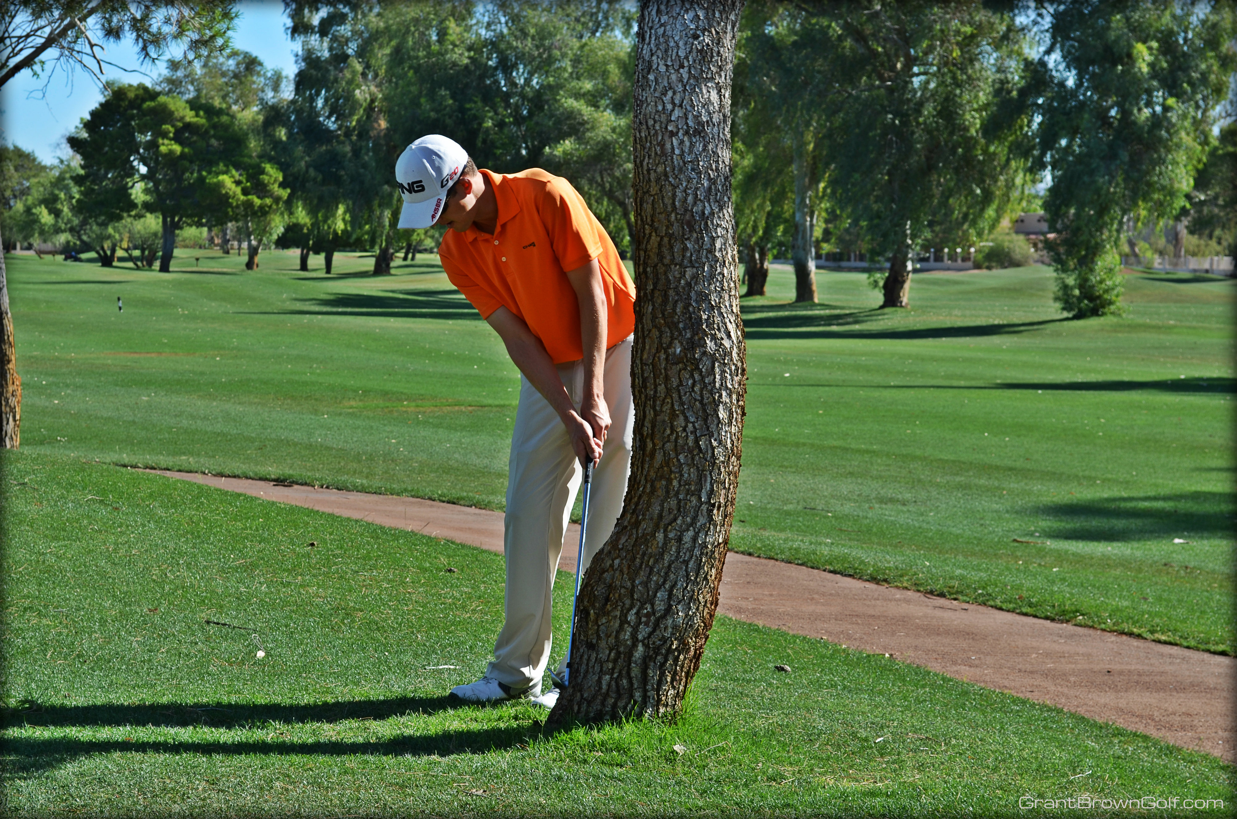 In the past, I used a standard set-up for this shot and would just try to stop my follow through before the shaft of my club hit the tree.