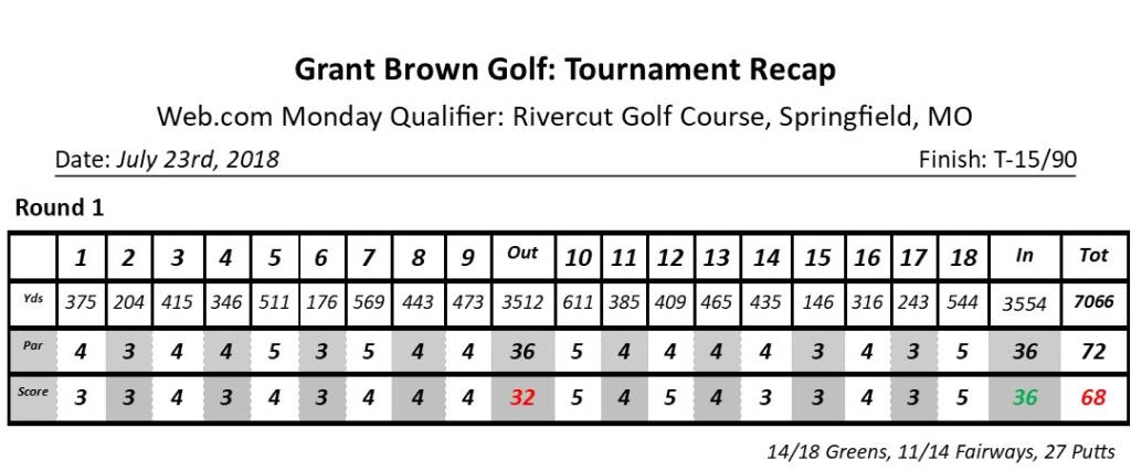 Positives: I never got in trouble off the tee even though there were a lot of tough tee shots. It is the best ball-striking I’ve had yet in a high pressure situation. Also, I said “in and out” to myself whenever a thought would come into my head about what my score was. I did not worry about my score, I just focused on hitting it where I was aiming on every shot. My goal was to just hit every shot solid and let the score take care of itself.