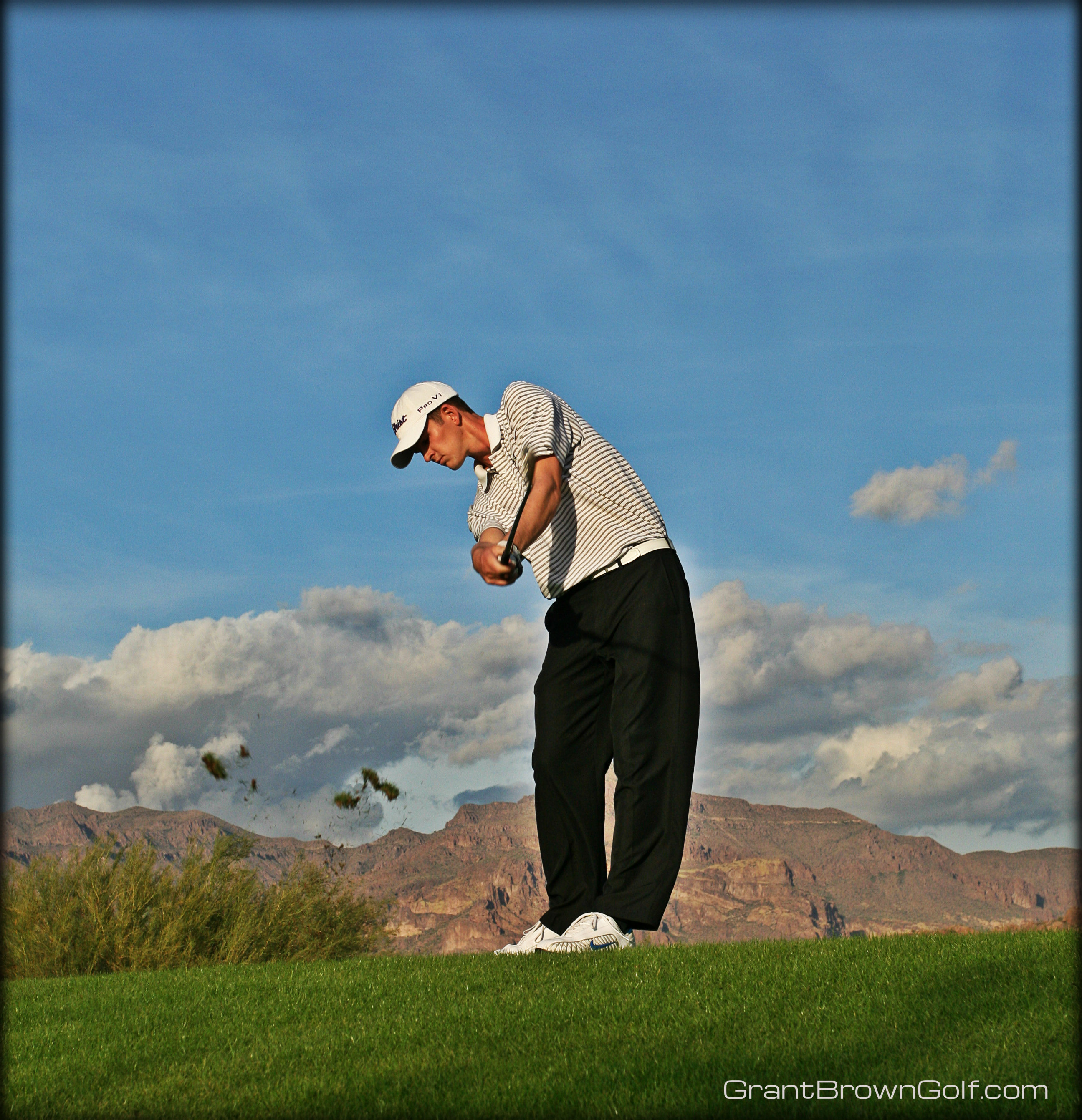 Post impact signatureDid you know that the hardest shot to hit in golf is a straight shot? If you do not plan to work the ball either from left to right or right to left, you are putting yourself at a disadvantage even before you hit the shot. If you pick a target that is left of the flag and then try to fade the shot, your percentages of getting the ball close go up. The same can be said if you pick a target that is right of the flag and then draw the ball in to the flag. (These examples are based on a right handed golfer.)